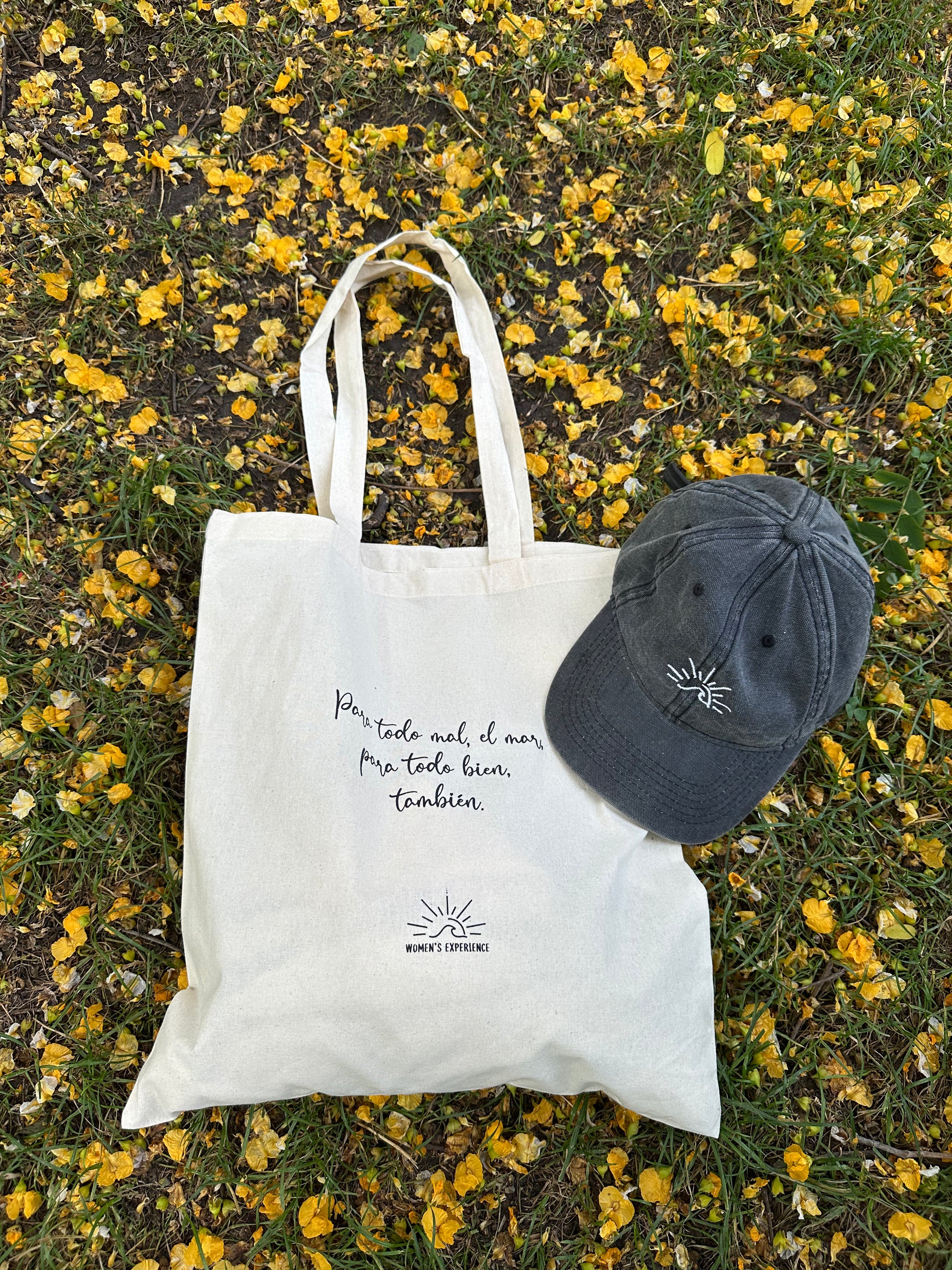 Y nuestra Totebag Women’s Experience, también 100% algodón, color blanco crudo con letras negras, con el mensaje que nos representa: